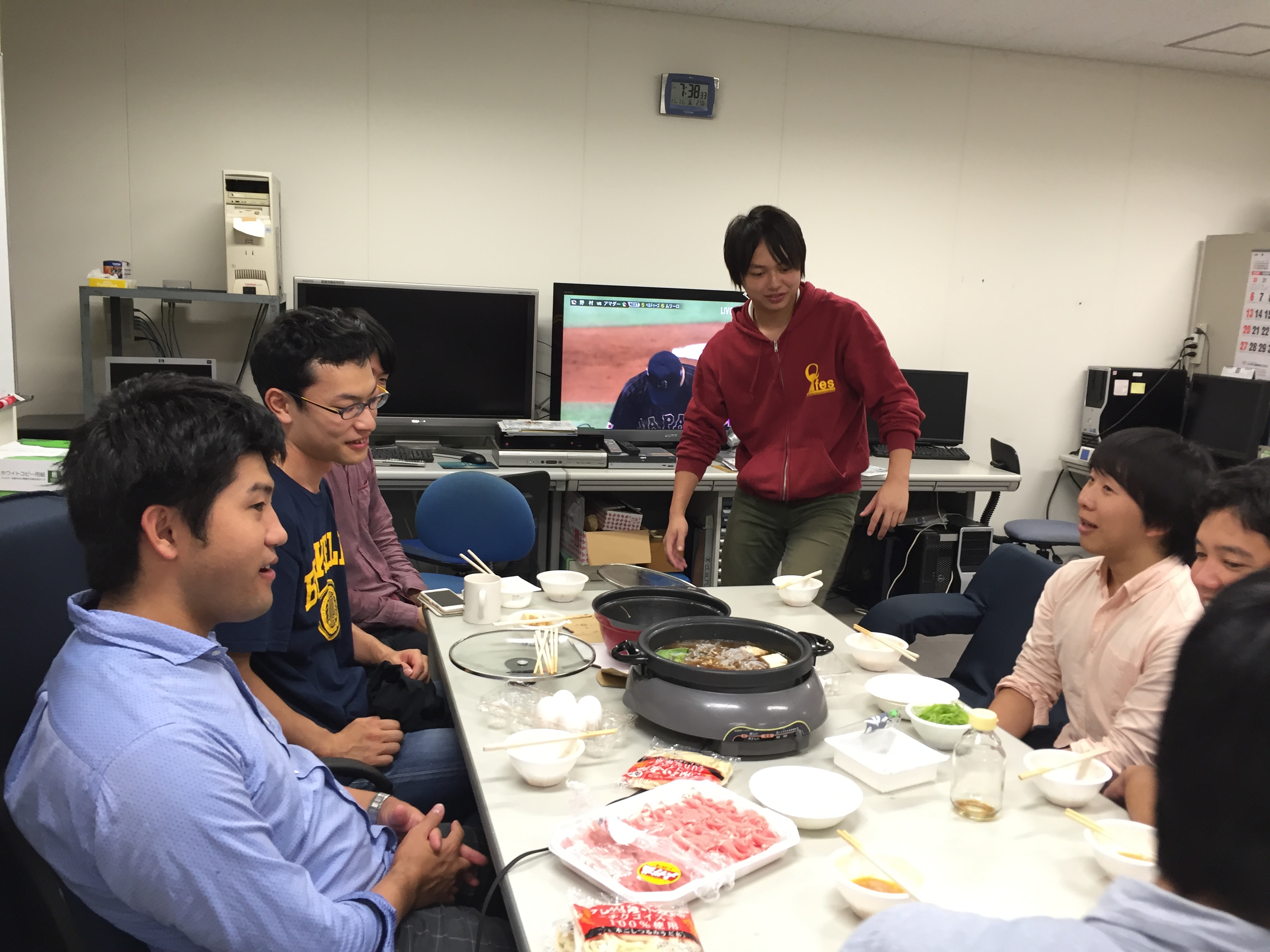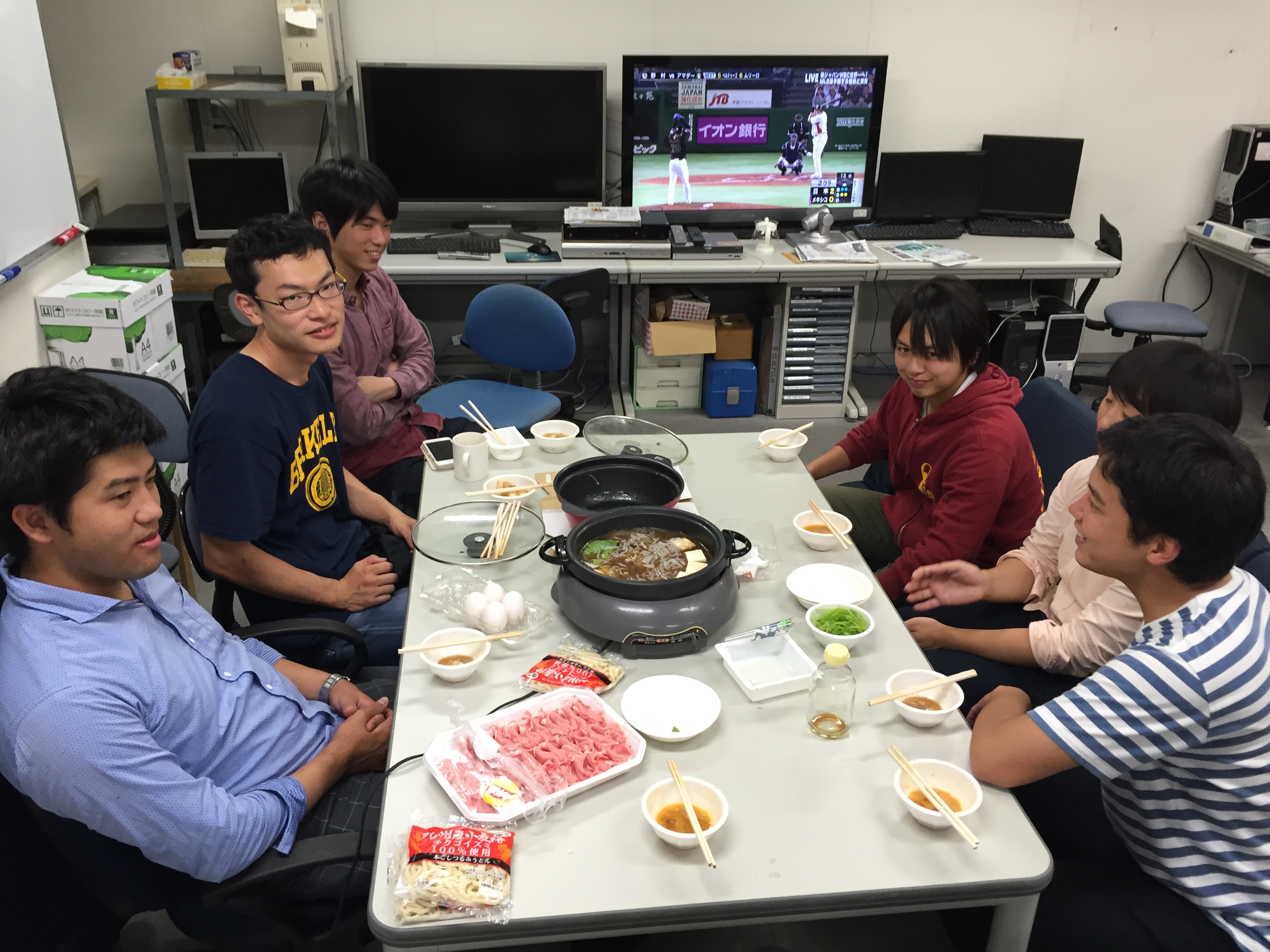 鍋料理を食べながら野球試合をみる